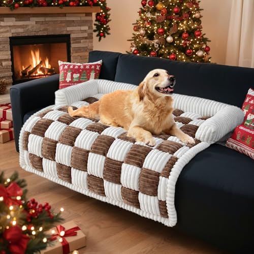 LiveGo Pet Couch Covers for Dogs, Plush Washable Furniture Protector for Dogs & Cats, Anti-Slip Dog Sofa Bed Mat, Soft Durable Pet Couch Protector, Cozy and Easy to Clean (Dark Brown, 75 * 75 * 13cm)