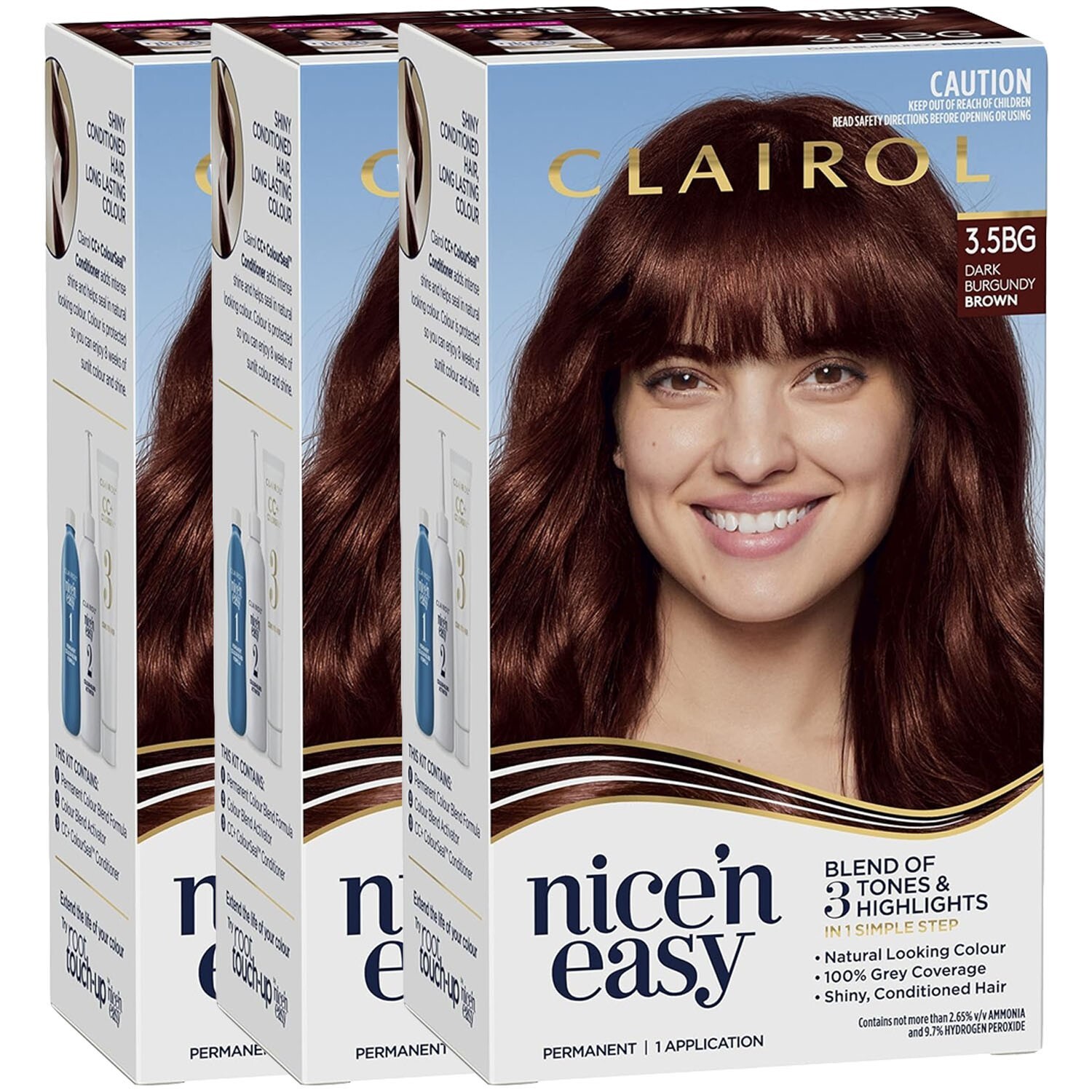 Clairol Nice 'N Easy Permanent Colour 3.5BG Natural Dark Burgundy | Pack 3