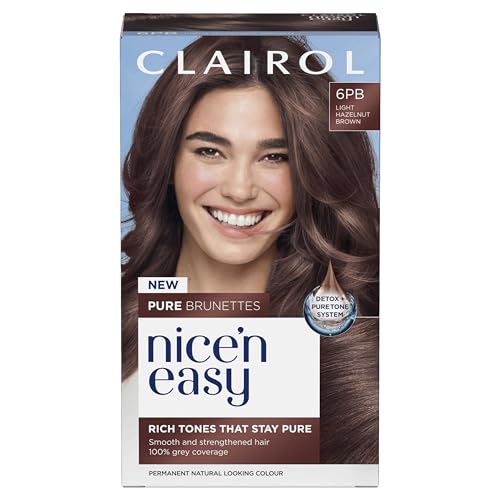 Clairol Nice n’ Easy Pure Brunettes Hair Colour | Pure and Rich Brown Tones | Smooth, Natural Hair Colour | With Pre-Colour Serum | 100% Grey Coverage | 6PB Light Hazelnut Brown| Permanent Hair Dye