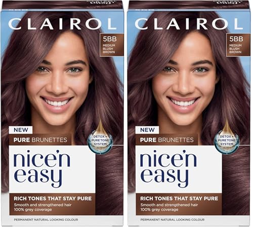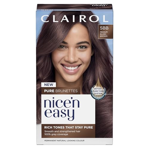 Clairol Nice n’ Easy Pure Brunettes Hair Colour | Pure and Rich Brown Tones | Smooth, Natural Hair Colour | With Pre-Colour Serum | 100% Grey Coverage | 5BB Medium Blush Brown| Permanent Hair Dye