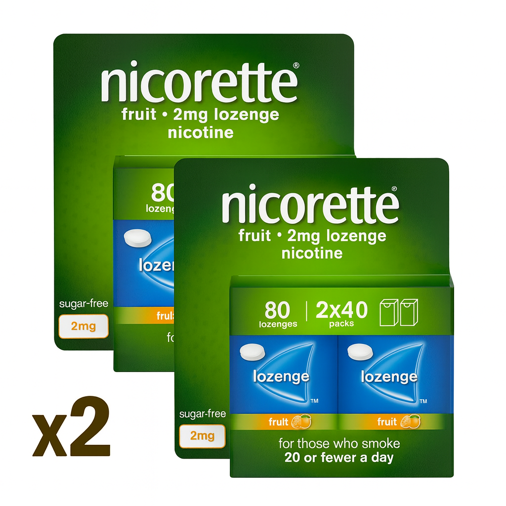 Nicorette Fruit 2mg Lozenge 80 Lozenges 2 x 40 NEW (050)