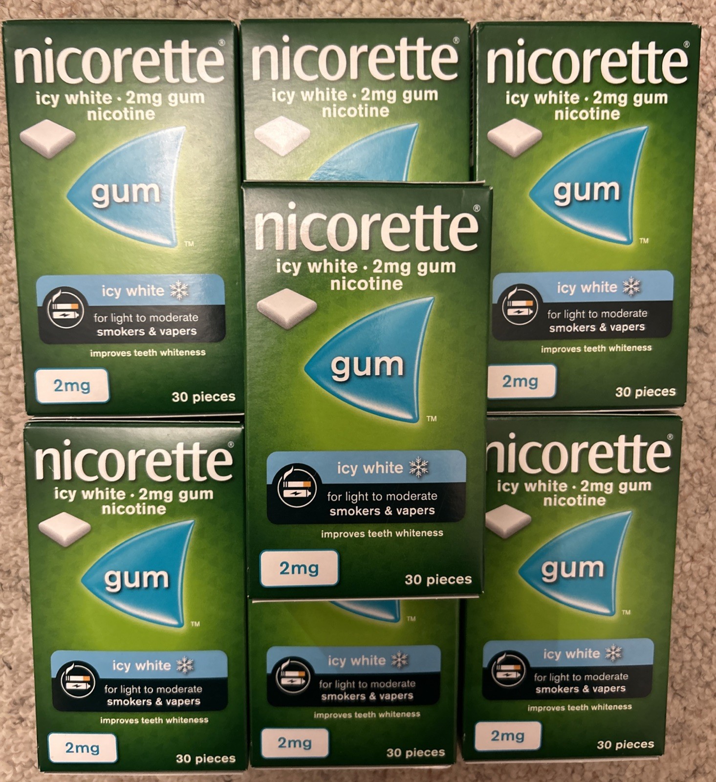 7x Nicorette Icy White 2mg Nicotine Gum – 7 x 30 (210 Gums) 100% ORIGINAL