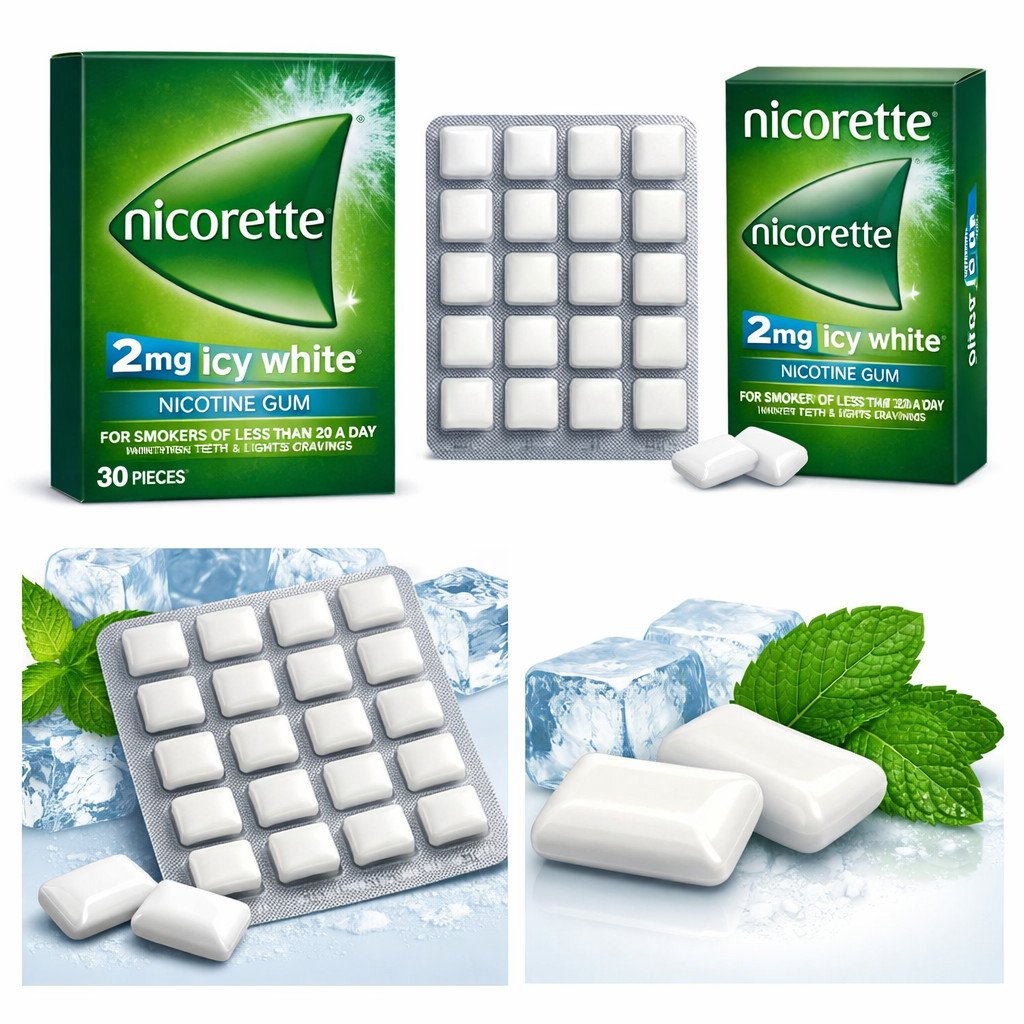 4x Nicorette Icy White 2mg Nicotine Gum – 120 Pieces (4x30) – Brand New