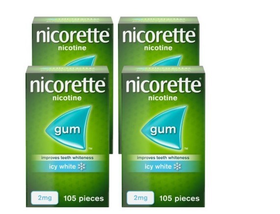 Nicorette IcyWhite 2mg Gum (105 pieces) x 4 boxes (420) FREE POST NO FEES