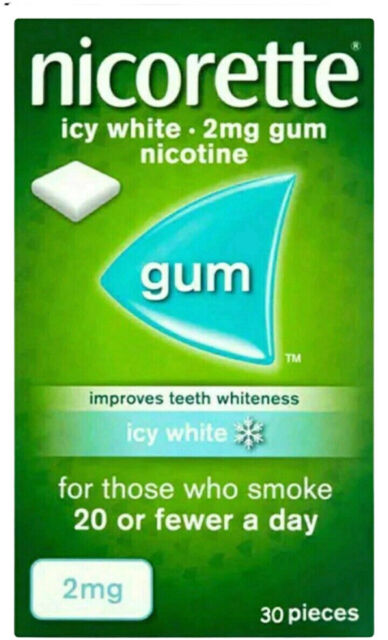 NICORETTE ICY WHITE 2mg GUM 30 Pieces Teeth Whitening New Long Expiry Date