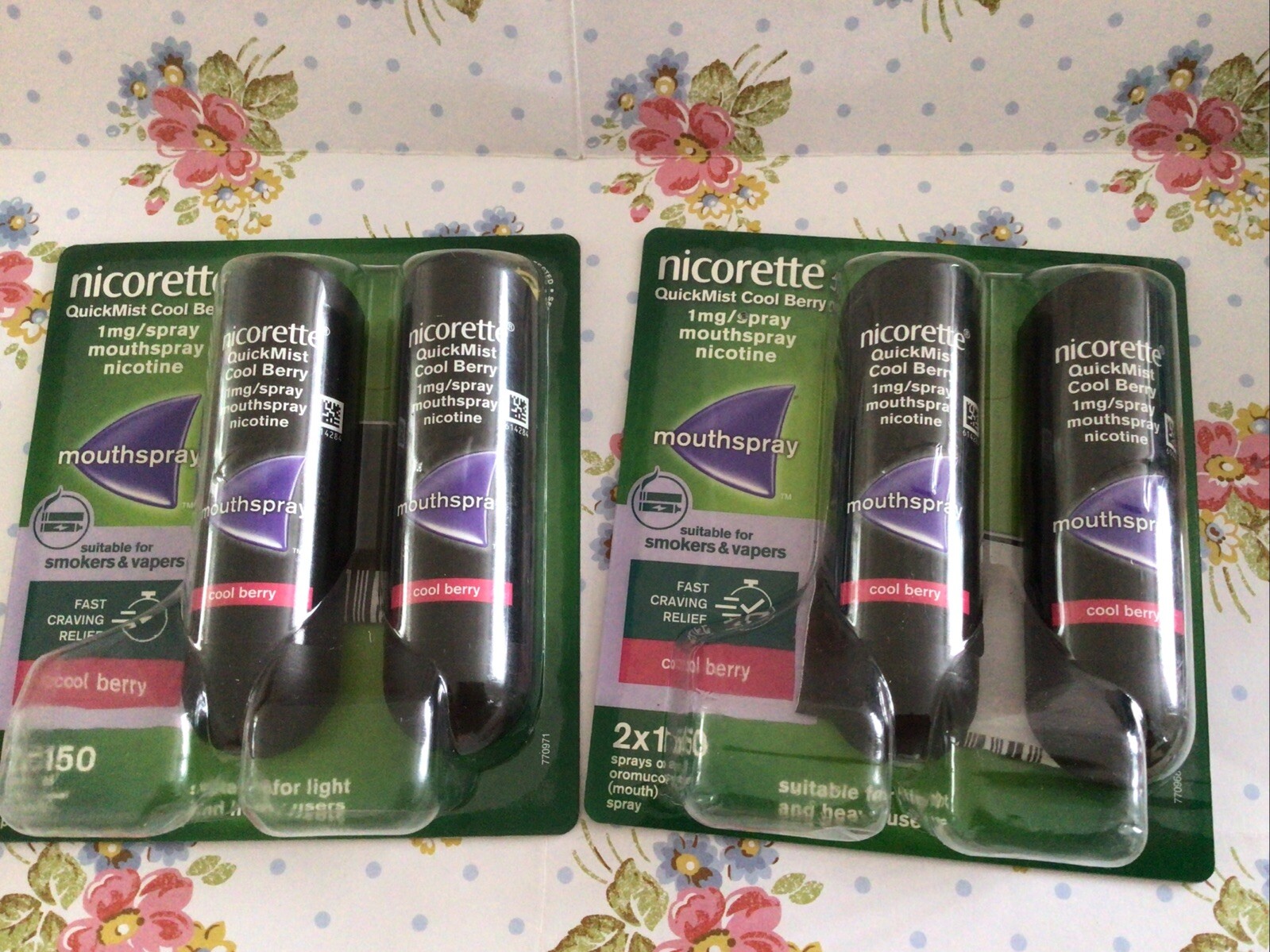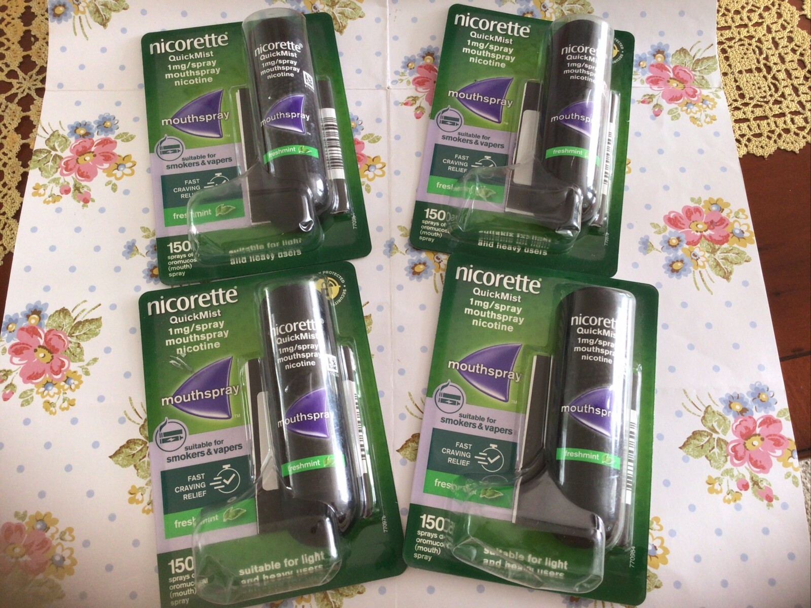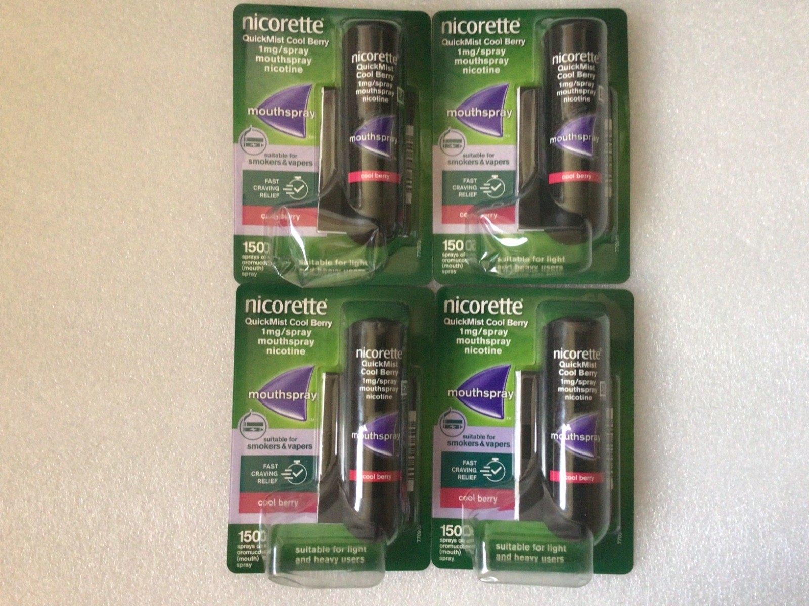 4 x Nicorette Quickmist Cool Berry Mouthspray 8 x 150 Sprays Nicotine 1mg LOT