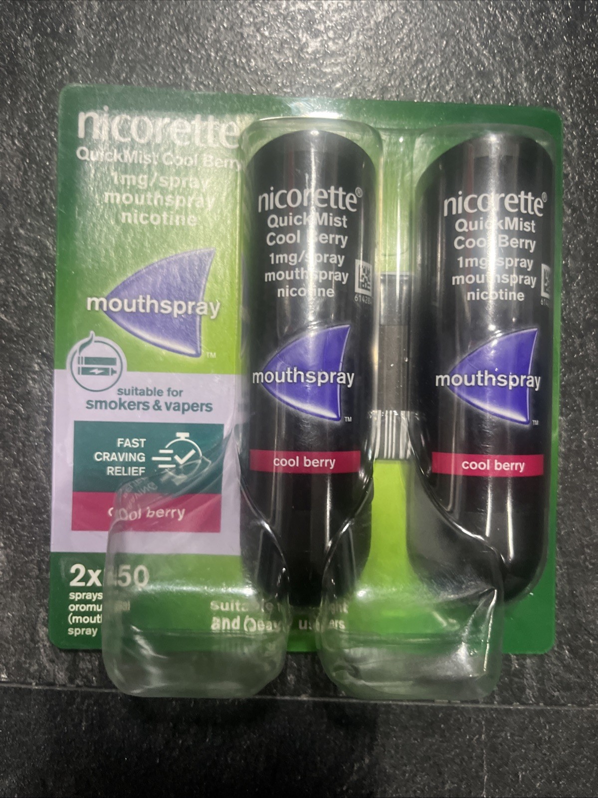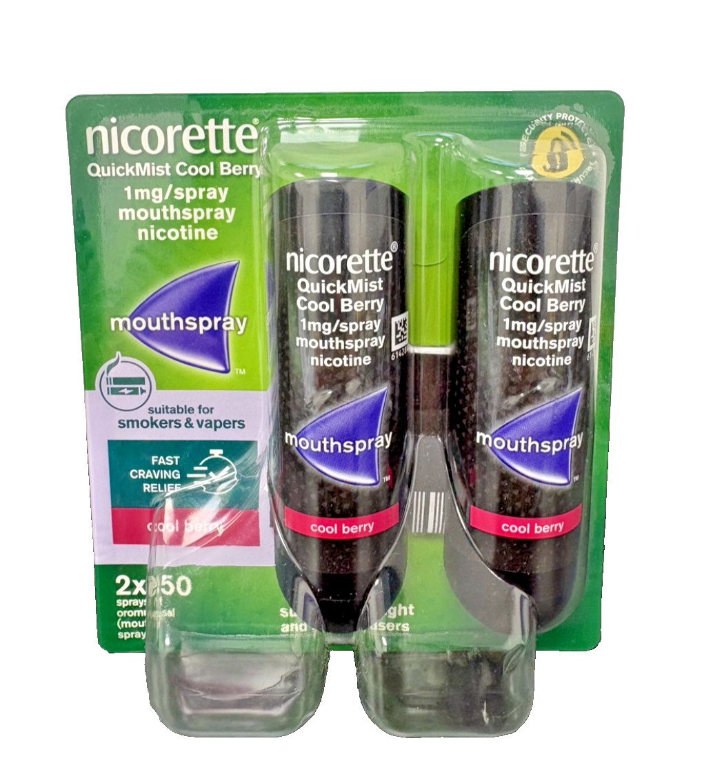 Nicorette QuickMist Cool Berry 1mg Spray Mouthspray Nicotine Duo 2X150 Sprays