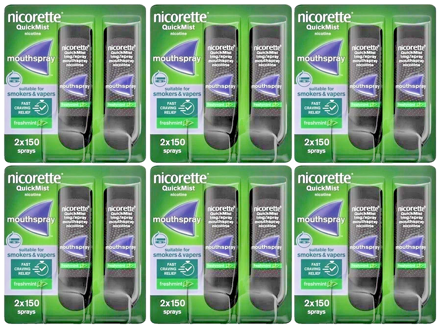 6 x Nicorette Quickmist Freshmint Duo Mouthspray 12 x 150 Sprays Nicotine ⭐⭐⭐⭐⭐