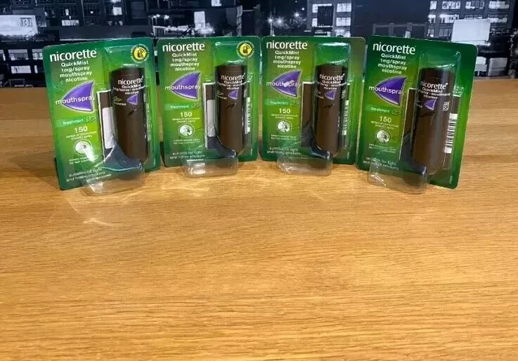 4 x Nicorette Quickmist Freshmint Duo Mouthspray 8 x 150 Sprays Nicotine ⭐⭐⭐⭐⭐