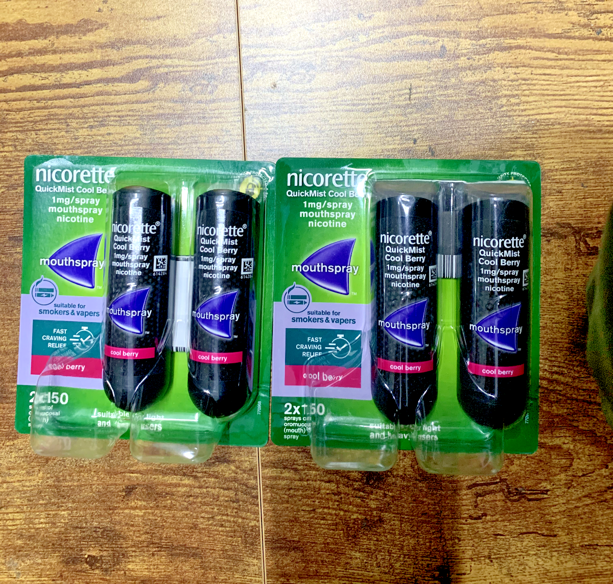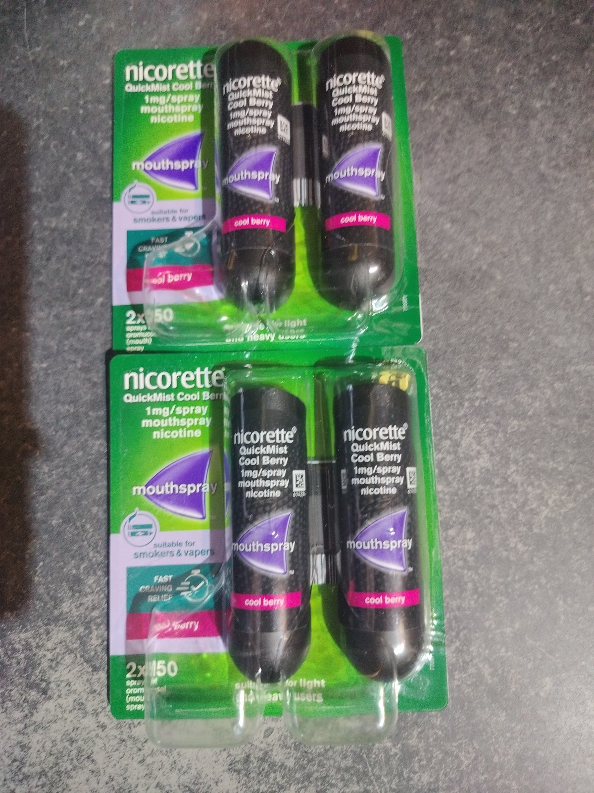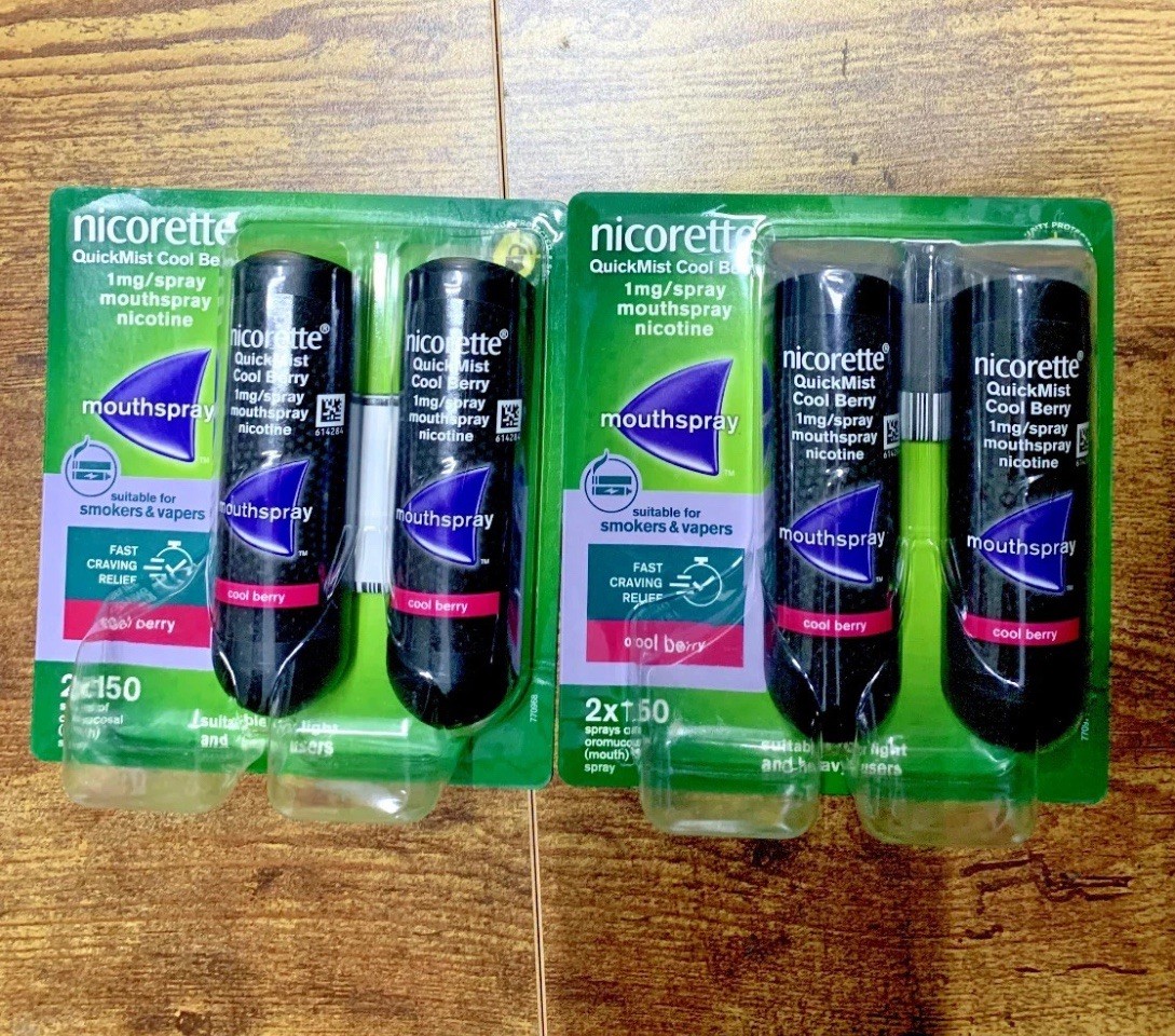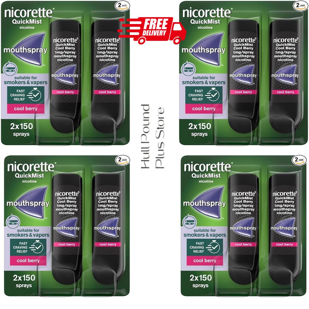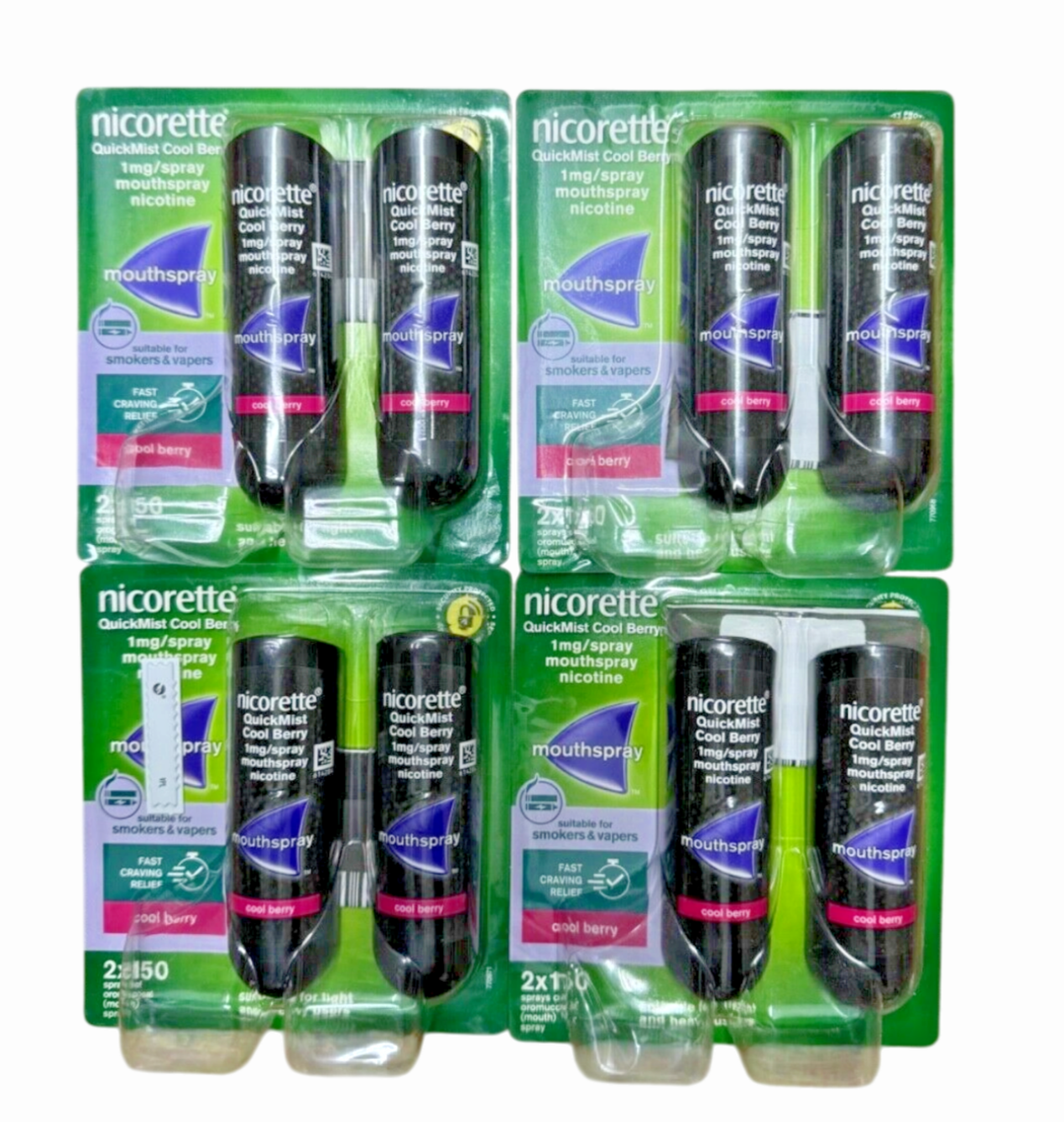 4 x Nicorette Quickmist Cool Berry Duo Mouthspray 8 x 150 Sprays Nicotine ⭐⭐⭐⭐⭐