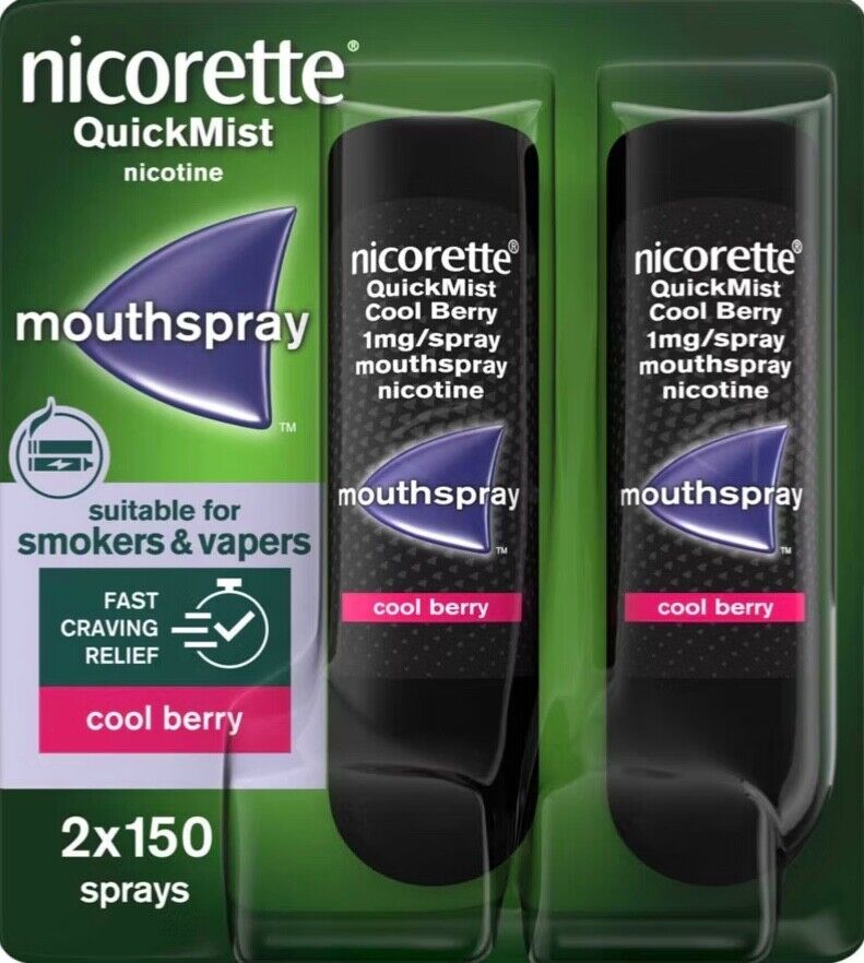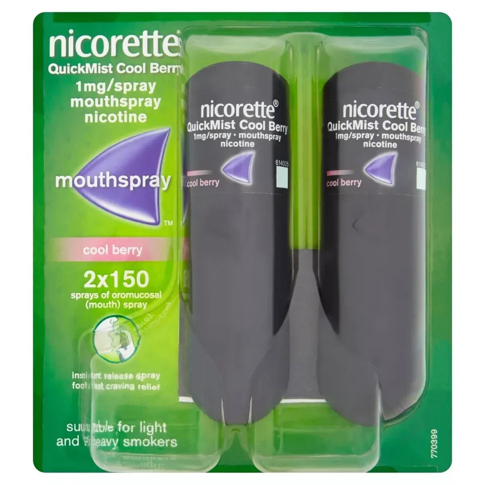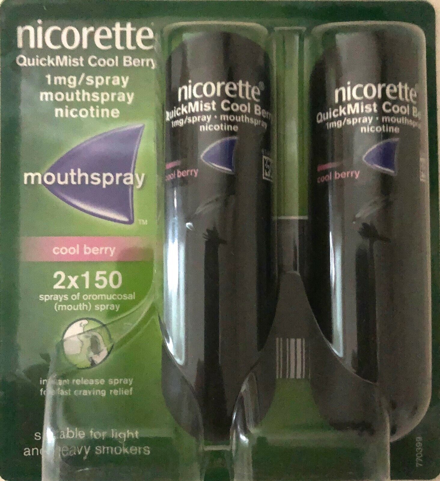 2 X 150 NICORETTE COOL BERRY QUICKMIST QUICK MIST 1mg SPRAY MOUTHSPRAY NICOTINE