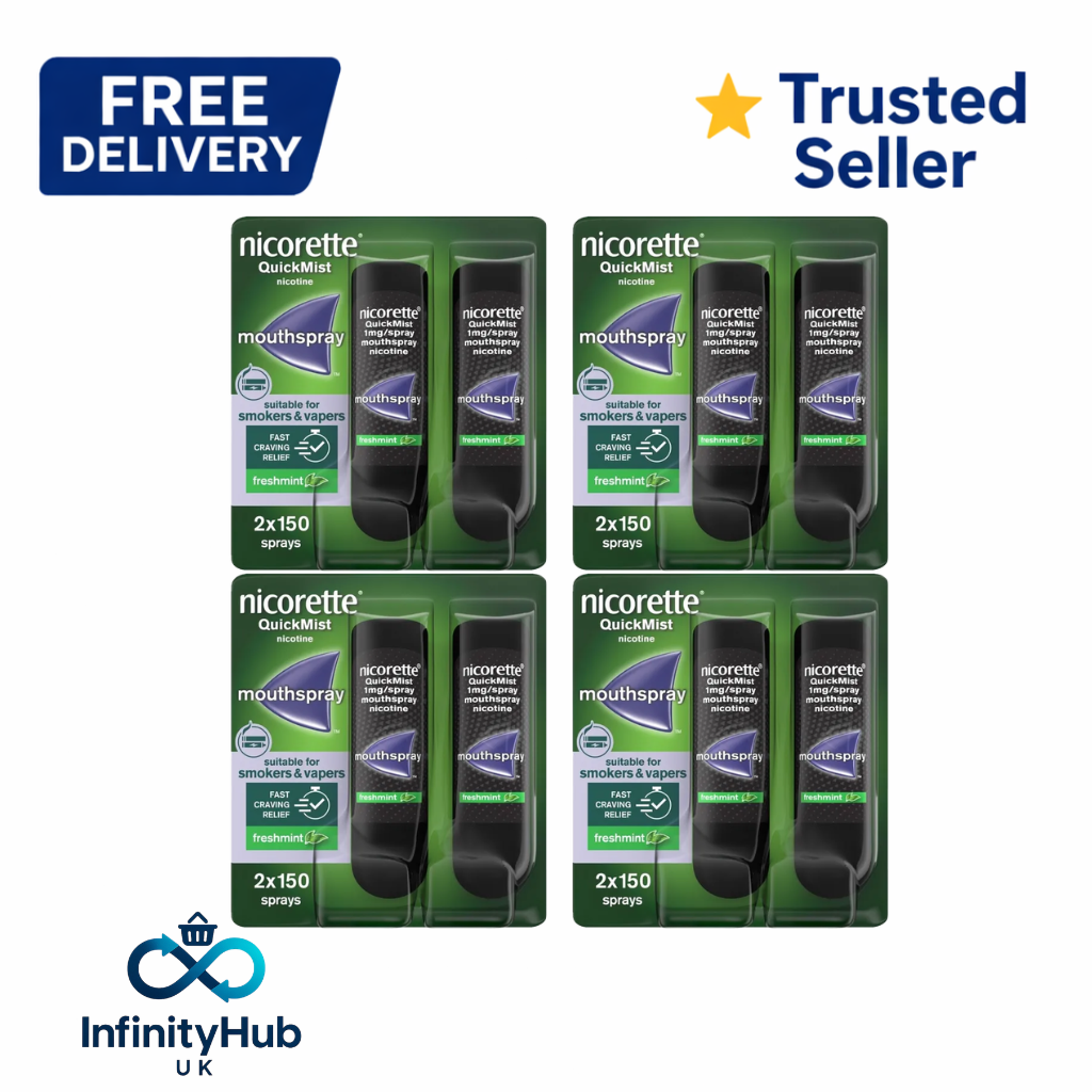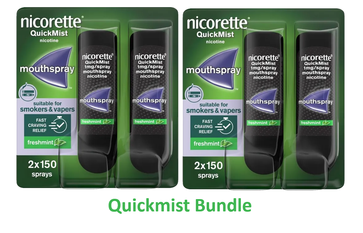 Nicorette Quickmist Freshmint 4 x 150 Sprays - TWIN BUNDLE - FREE DELIVERY