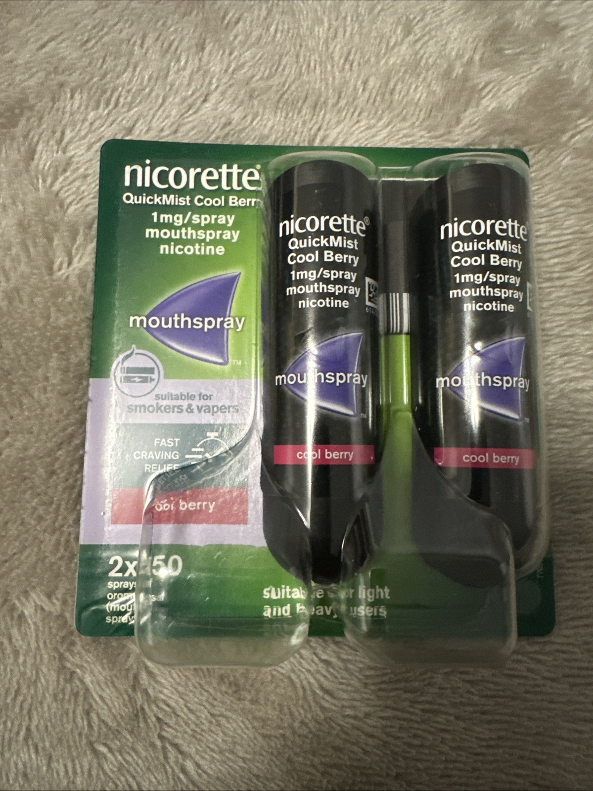 1 x Nicorette Quickmist Cool Berry Duo Mouthspray 2 x 150 Sprays Nicotine ⭐⭐⭐⭐⭐