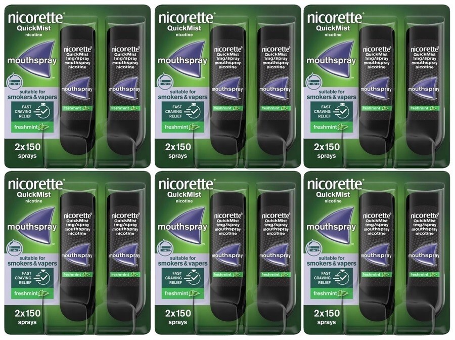 6 x Nicorette Quickmist Freshmint Mouthspray Nicotine Pack of 12 x 150 Sprays