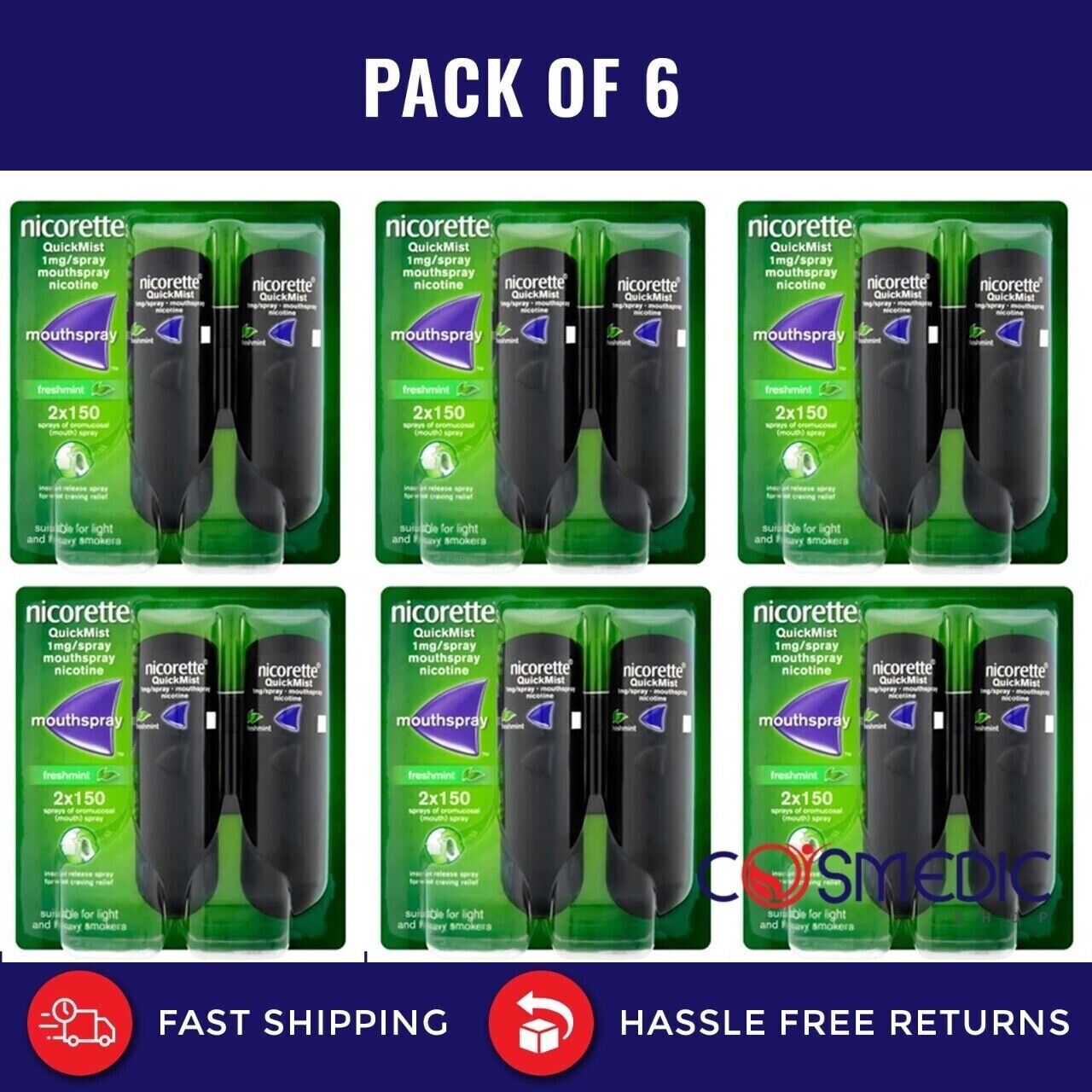 6 PACK Nicorette Quickmist Mouthspray Freshmint Duo 2 ⨯150 Sprays (Pack of 6)