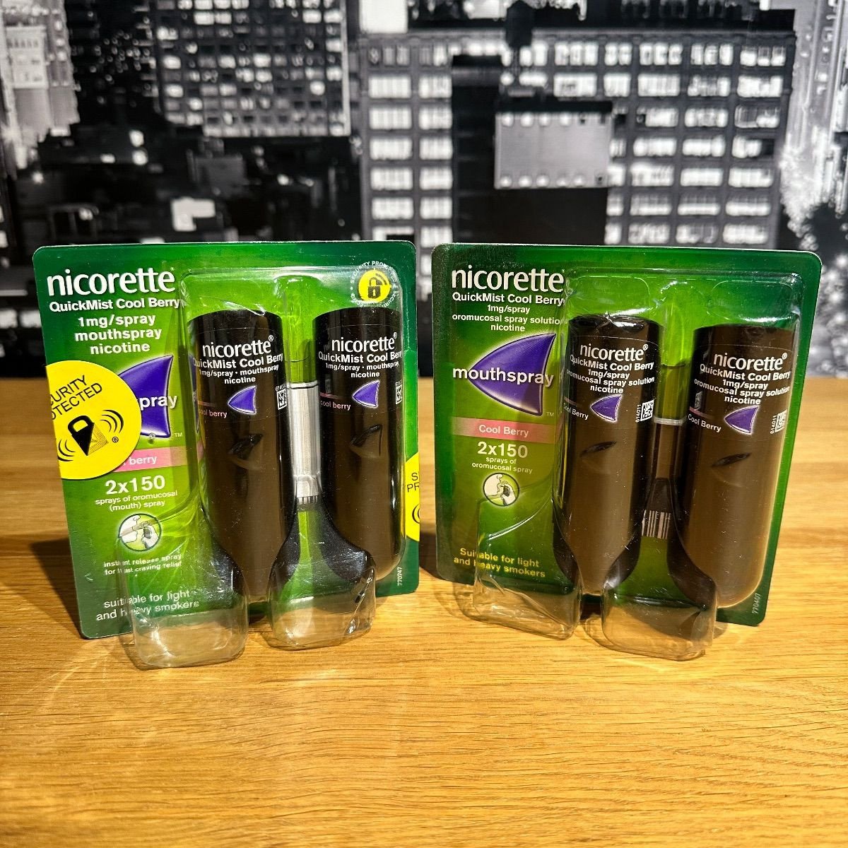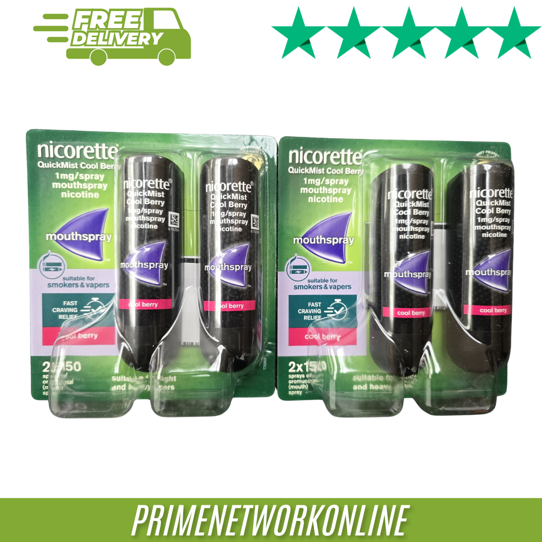 2 x Nicorette Quickmist Cool Berry Duo Mouthspray 4 x 150 Sprays Nicotine ⭐⭐⭐⭐⭐