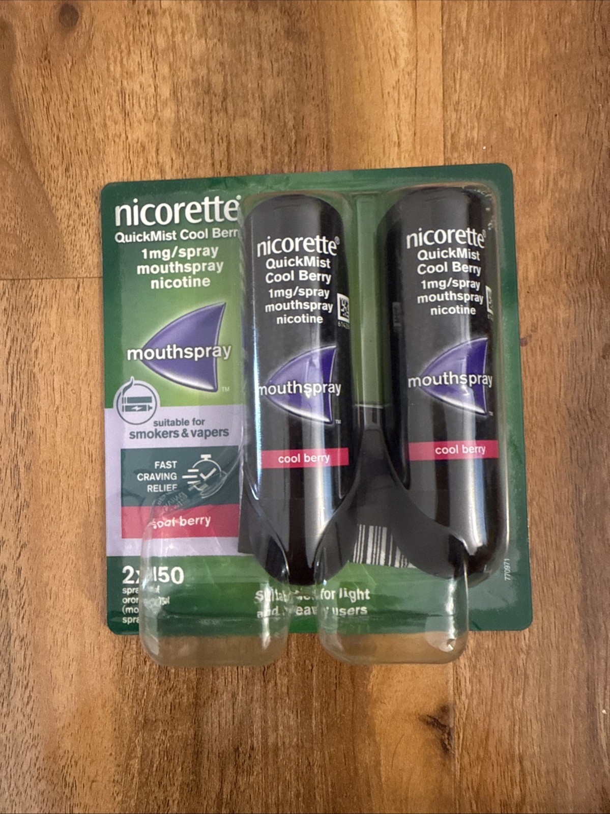 Nicorette QuickMist Nicotine Mouth Spray Cool Berry 1mg duo pack Long Expiry