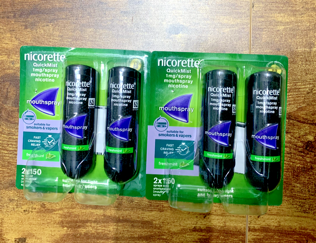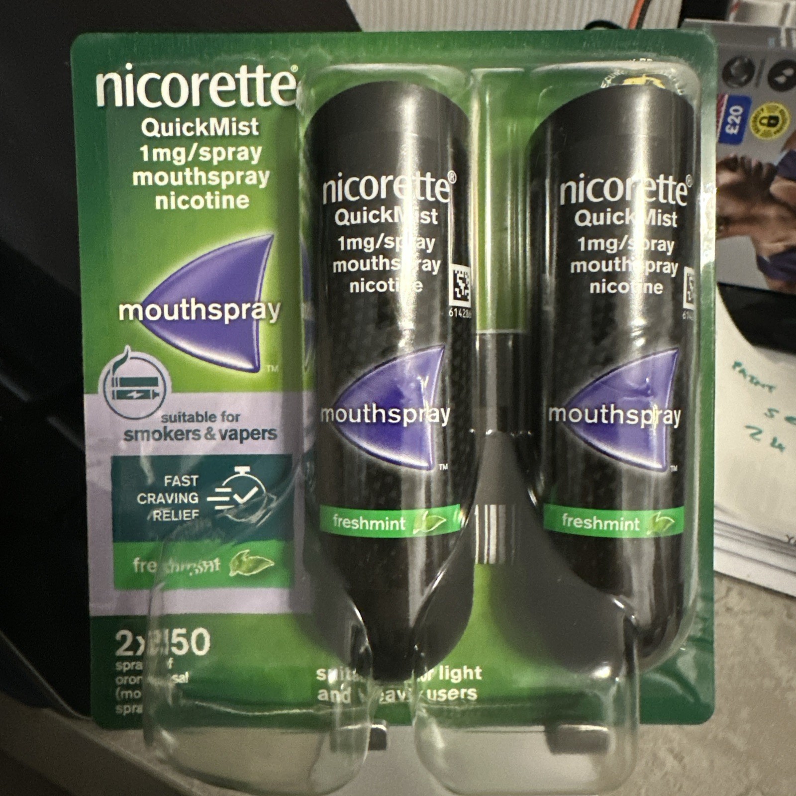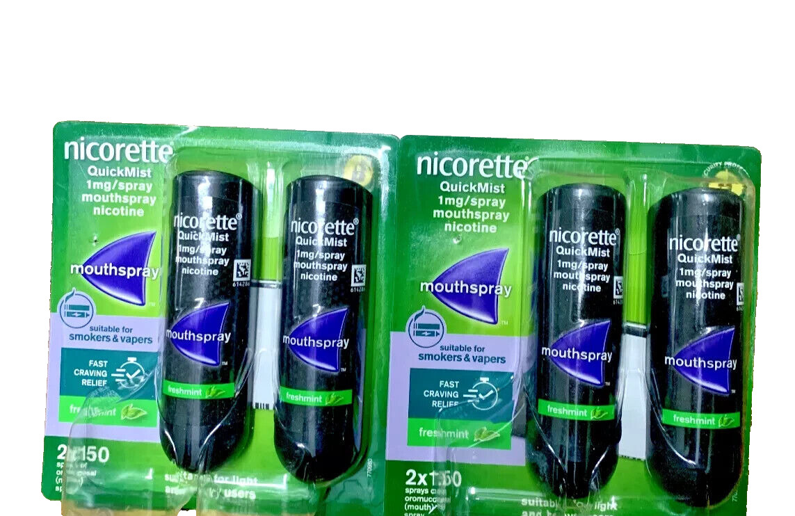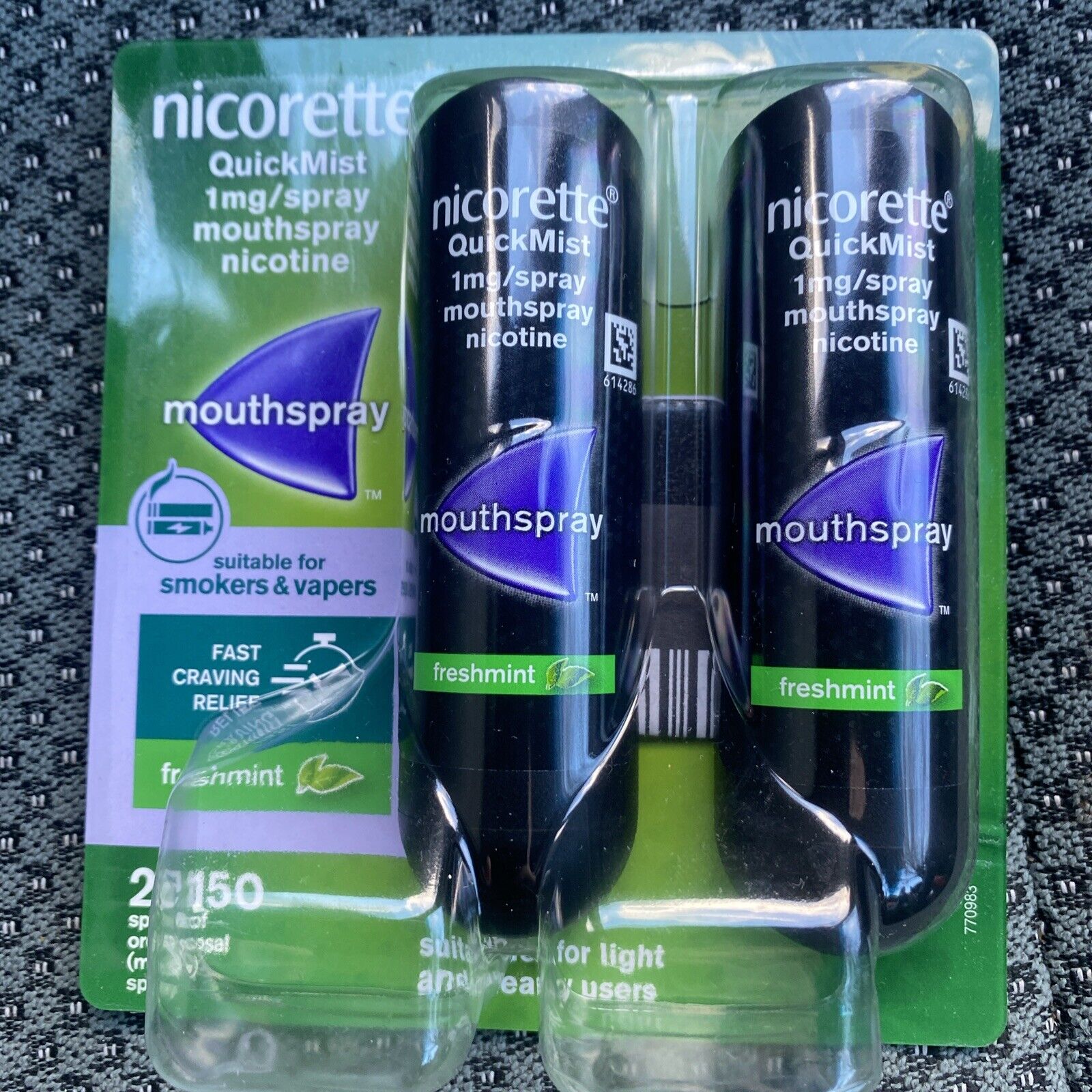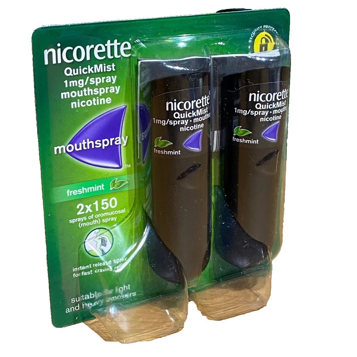 2 x Nicorette Quickmist Freshmint Duo Mouthspray 4 x 150 Sprays Nicotine ⭐⭐⭐⭐⭐