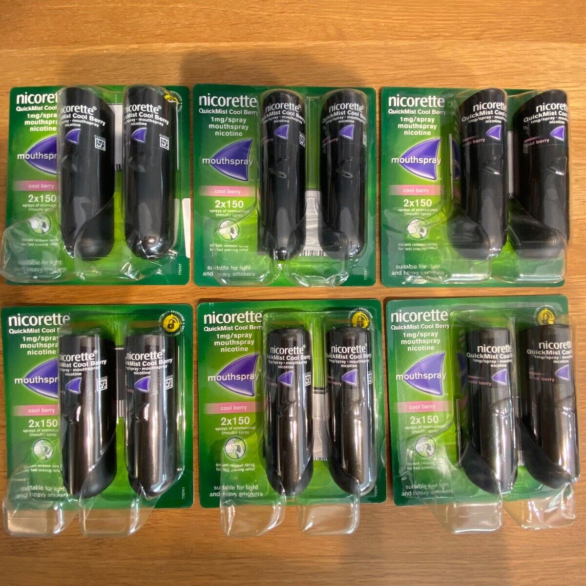 6 x Nicorette Quickmist Cool Berry Duo Mouthspray 12 x 150 Sprays Nicotine ⭐⭐⭐⭐⭐