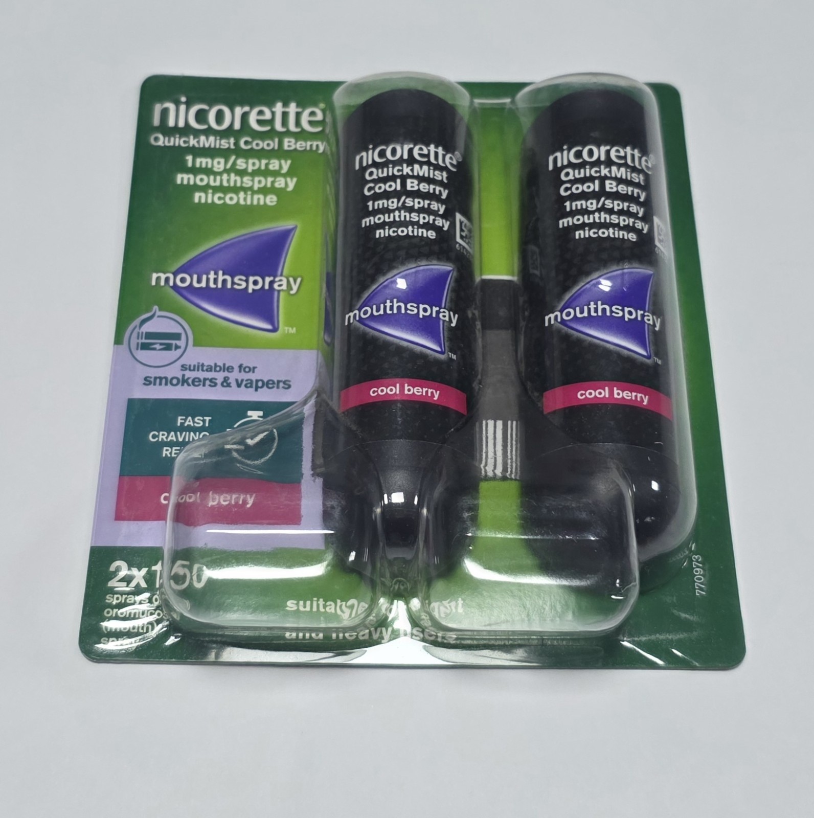X1 DUO Nicorette Quickmist Cool Berry Nicotine Mouthspray 2 x 150 Sprays