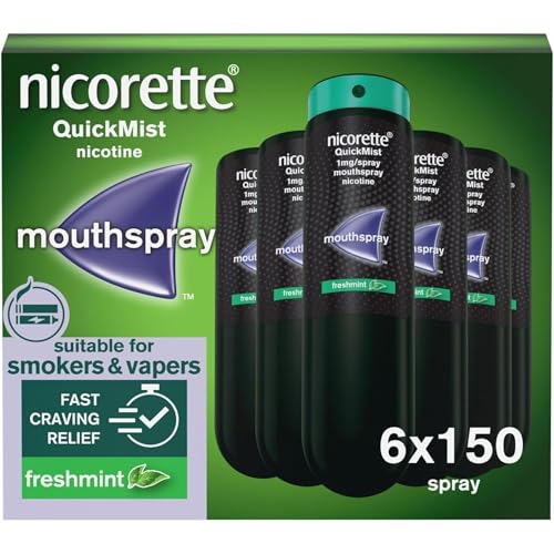 Nicorette QuickMist Mouthspray, Freshmint (6 x 150 Sprays) Smoking or Vaping Cessation Aid, designed to start reducing cravings in 30 seconds (Quit Smoking or Quit Vaping Aid)