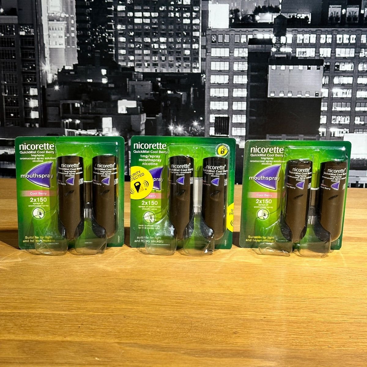 3 x Nicorette Quickmist Cool Berry Duo Mouthspray 6 x 150 Sprays Nicotine ⭐⭐⭐⭐⭐