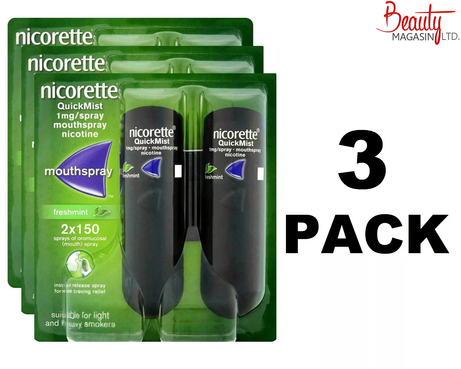 3 x Nicorette Quickmist Freshmint Duo Mouthspray 6 x 150 Sprays Nicotine ⭐⭐⭐⭐⭐