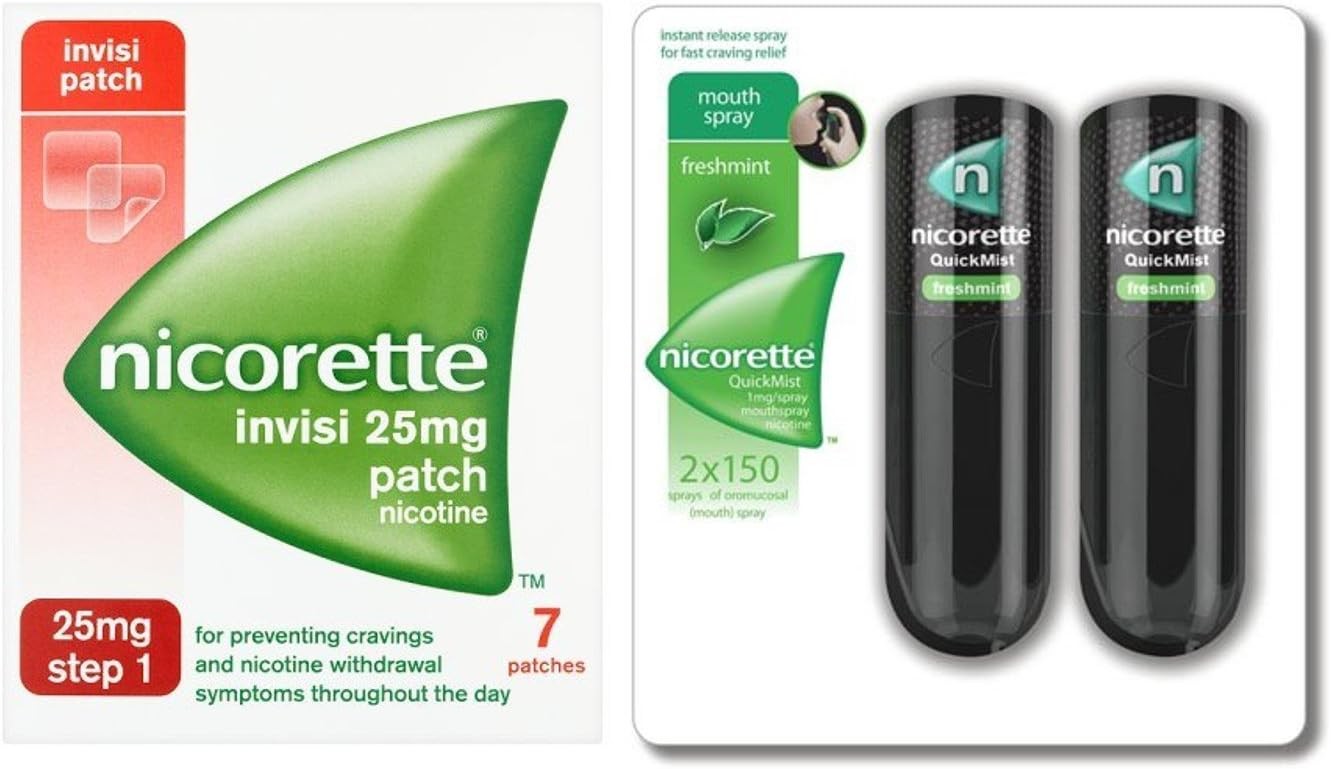 Nicorette Starter Bundle: Nicorette Invisi 25mg Patch 7 & QuickMist 1mg/spray Mouthspray Freshmint 150 sprays