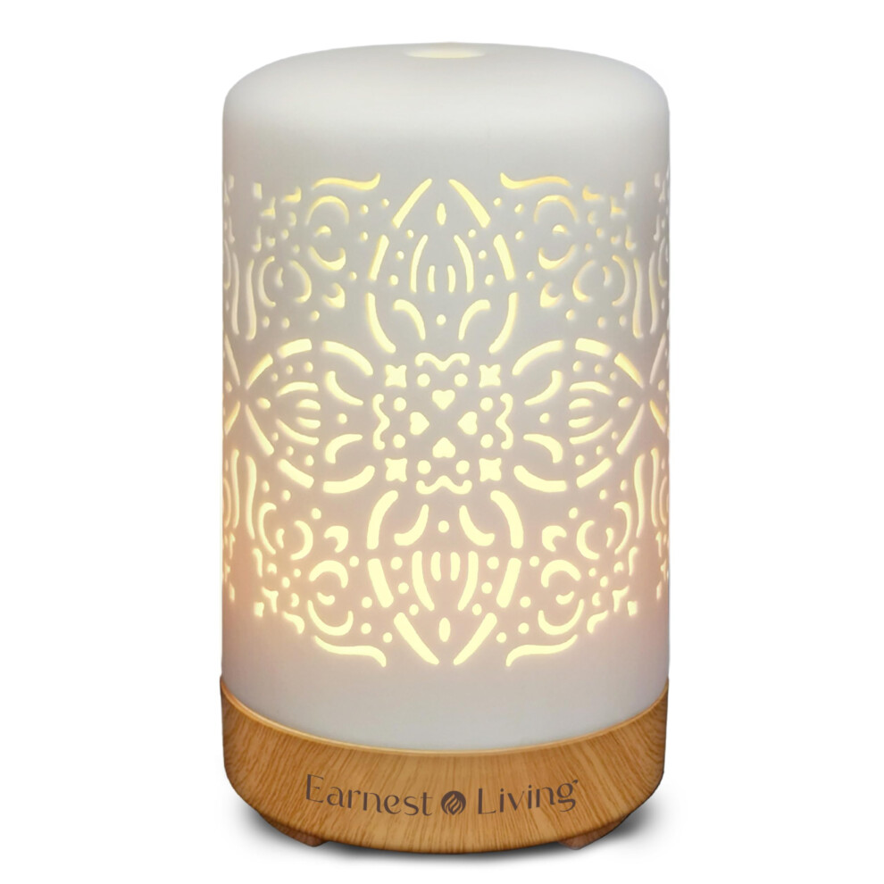 Earnest Living Essential Oil Diffuser for Home White Ceramic Aromatherapy Diffuser 100ml Timers Night Lights and Auto Off Function Essential Oils for