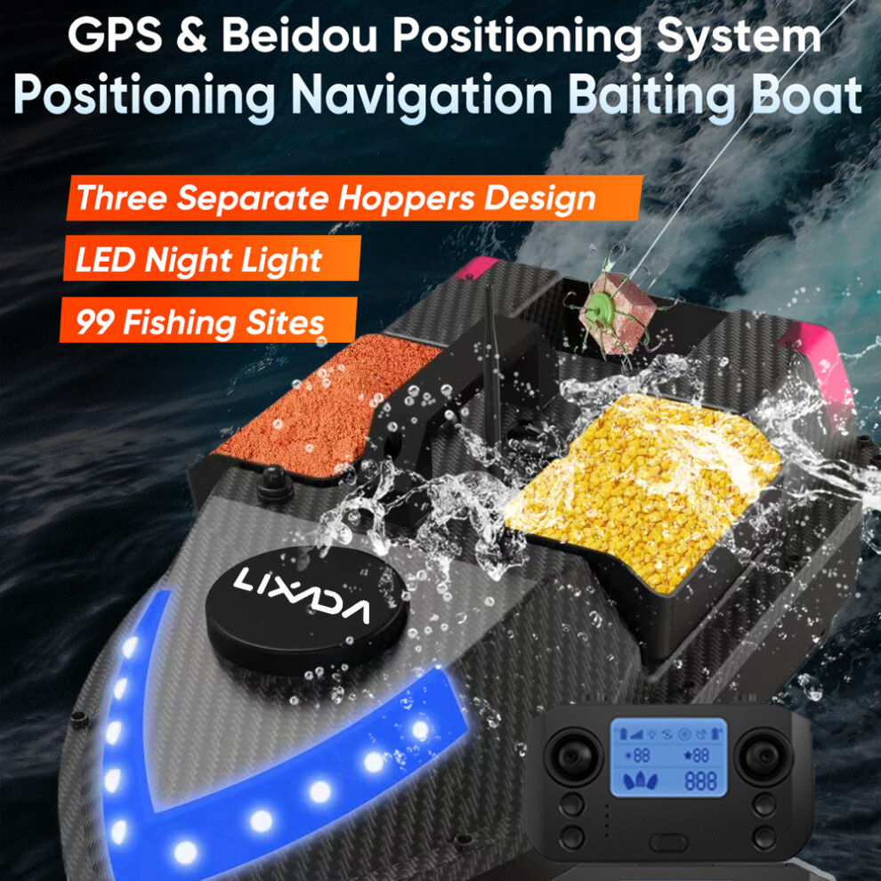 Bait Boat for Fishing with GPS Navigation, Night Lights, and Large 2.5kg Capacity Bait Compartment