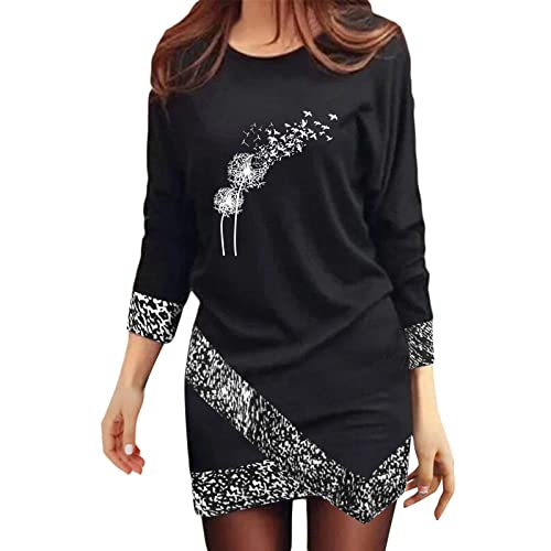 Valentines Dress For Women,Irregular For Women Long Size Party Dress Dresses Club Mini Plus Neck Round Night Sleeve Leopard Dresses Women's Dress (Black, XL)