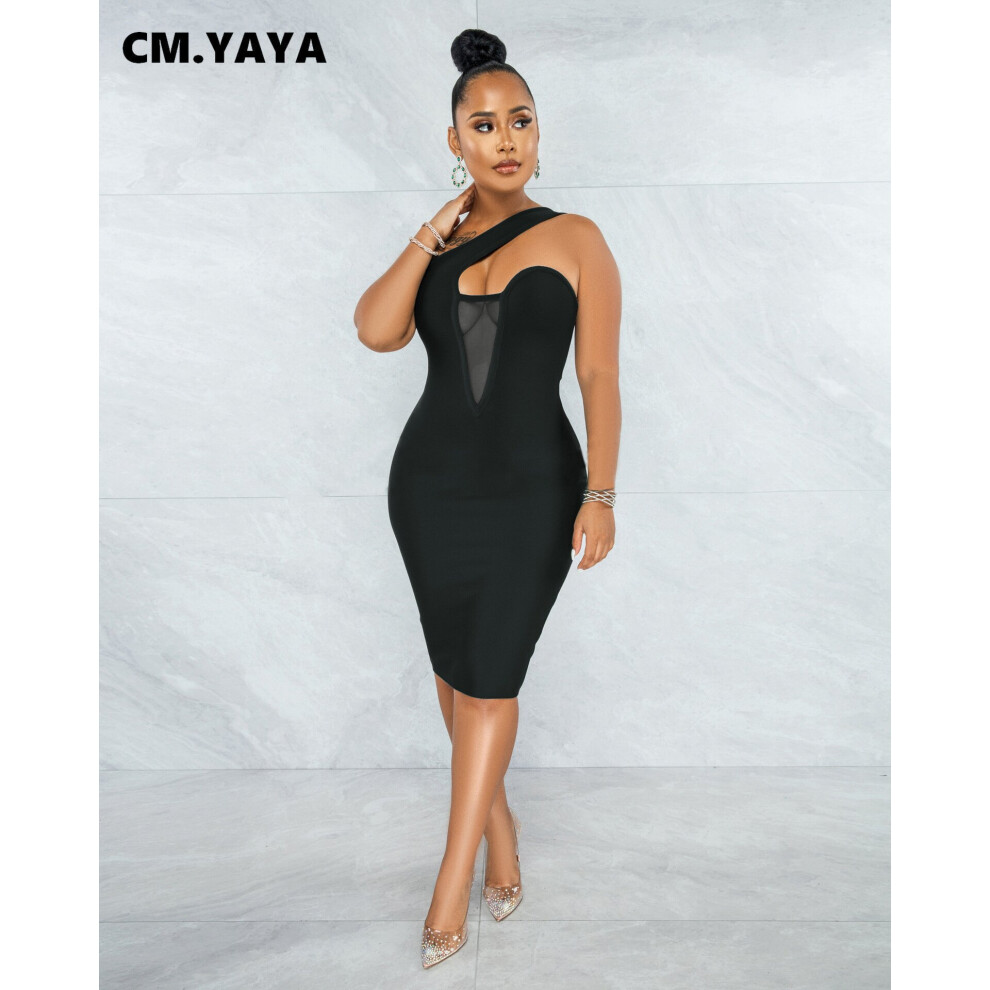 Women Mesh Patchwork Cut Out Shoulder Skew Neck Bodycon Midi Dress Sexy Party Club Night Pencil Sleeveless Dresses