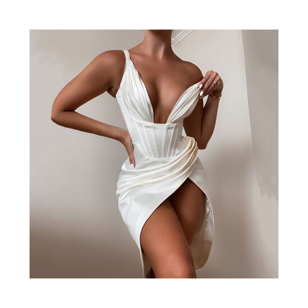 V Neck Satin Dress Sexy Birthday Evening Party Dresses Night Green Draped Summer Bodycon Women Dresses