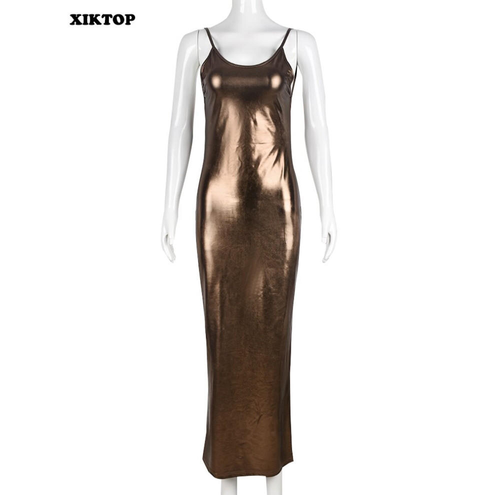 Spaghetti Strap Slim Dress Women Summer Sexy Backless Sleeveless Robe Stylish Metallic Night Club Dresses Partywear