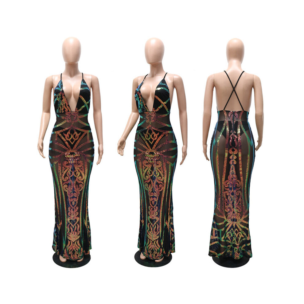 Sparkly Sequin Maxi Dress Women Party Night Backless Evening Dresses Spaghetti Strap Celebrity Bodycon Long Dress