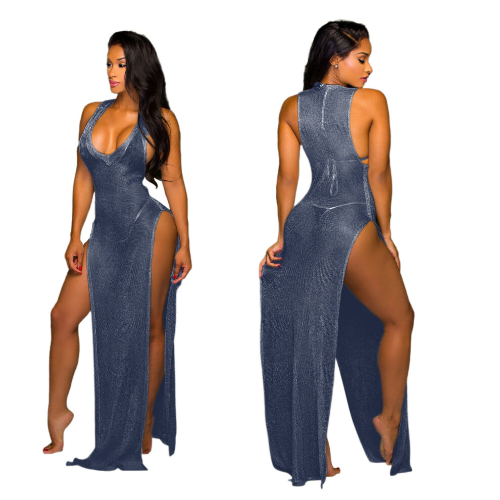 Women Beach Sexy High Split Elastic Sleeveless V-neck Tank Maxi Slim Bodycon Dress Party Night Club Long Dresses Vestido