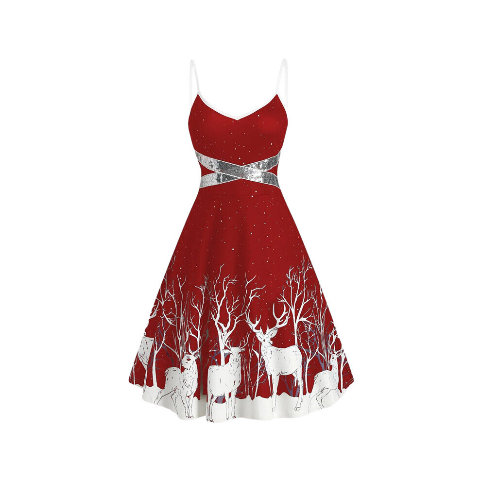 Women Christmas Print Dresses Winter Party Sequin Patchwork Sleeveless Dress Deer Skater Club Night Dresses