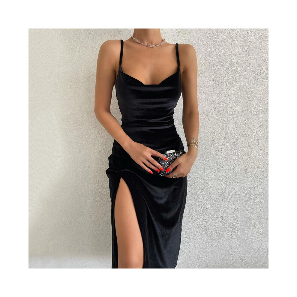 Spring Sexy Straps Slit Velvet Midi Dress for Women Sleeveless Backless Club Night Party Draped Dresses Clothes