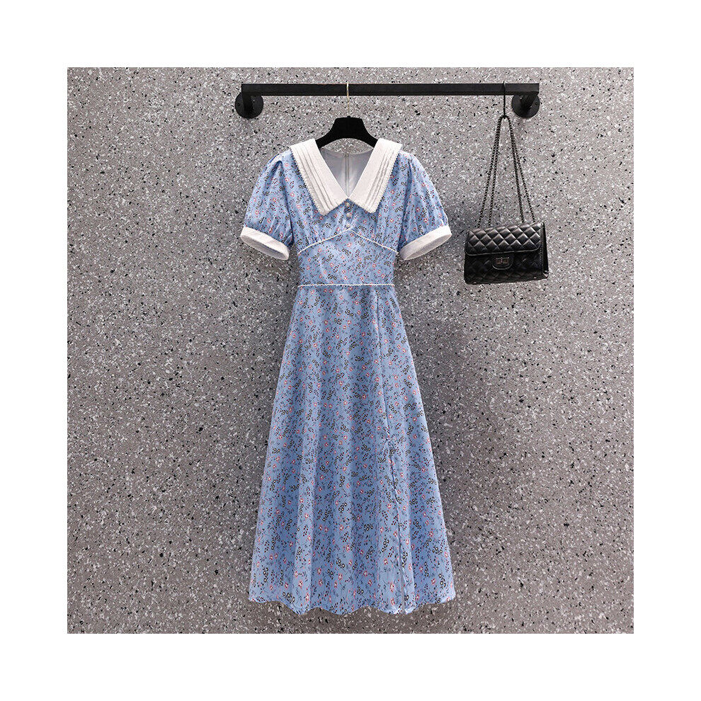 Summer Floral Short Sleeve Doll Collar Midi Dress Women Vintage Casual Party Vestidos Bodycon Night Dresses