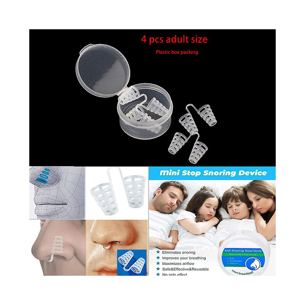 (4pcs adult vents) Anti snore nose aid Silicone Nasal Dilators Stop Snoring Nose Clip Sleep Tray Sleeping Aid Apnea Guard Night Device
