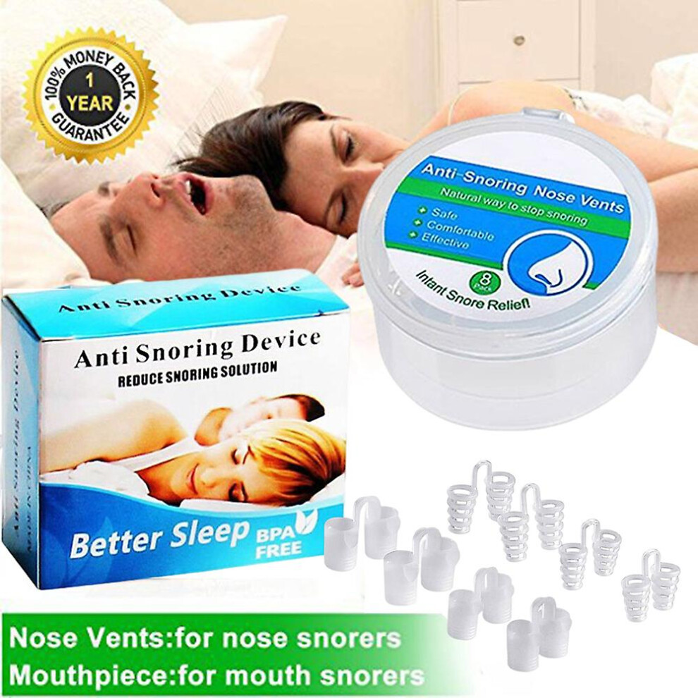(8pcs vents) Anti snore nose aid Silicone Nasal Dilators Stop Snoring Nose Clip Sleep Tray Sleeping Aid Apnea Guard Night Device