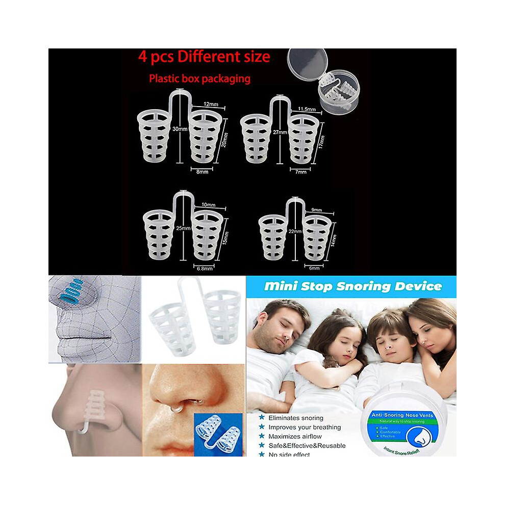 (4pcs Different vents) Anti snore nose aid Silicone Nasal Dilators Stop Snoring Nose Clip Sleep Tray Sleeping Aid Apnea Guard Night Device