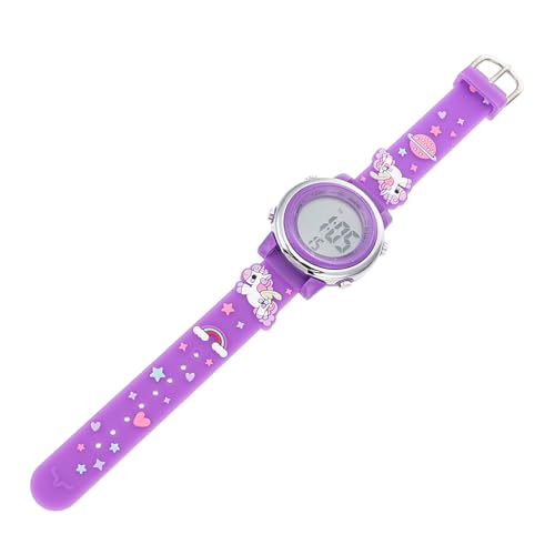 KOMBIUDA Digital Watch with Cartoon Strap Night Light Alarm Clock Calendar Stopwatch for Stylish LED Sports Wristwatch in Deep Purple