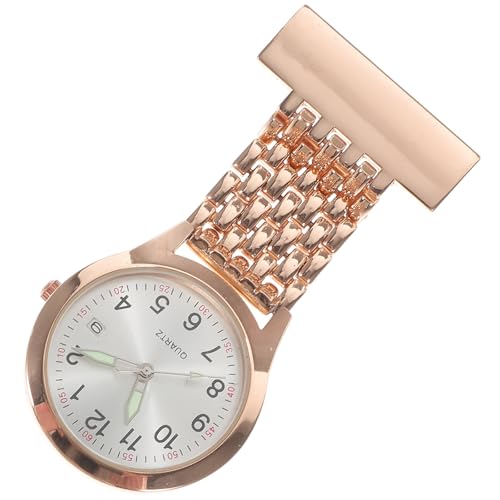 HORIALENCE Electronic Nurse Watch with Digital Display, LED Night Light, Alarm Clock, Rose Gold Hanging Fob Watch for Medical Staff