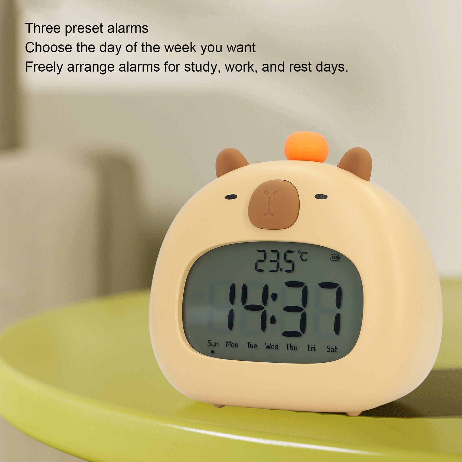 SENECESLI Kids Alarm Clock, Cute Capybara Dimming Alarm Clock with Night Light, Portable Toddlers Alarm Clock USB Rechargeable for Bedroom Home Decoration