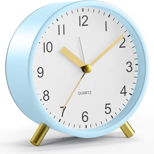 Analogue Alarm Clock, Digital Alarm Clocks for Heavy Sleepers, Silent Alarm Clocks Bedside Non Ticking with Night Light, Fashionable Battery Alarm Clock for Office Bedroom Elderly Children (Blue)