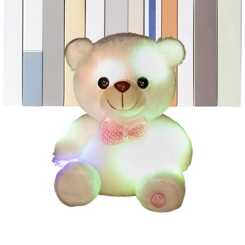 Night Light Stuffed Animal,8 Inch Glowing Bear Cuddly Doll | Bowknot Bear Plush Toy Stuffed Doll,for Christmas Valentines Boys Girls Adults Home Sofa Nursery Office