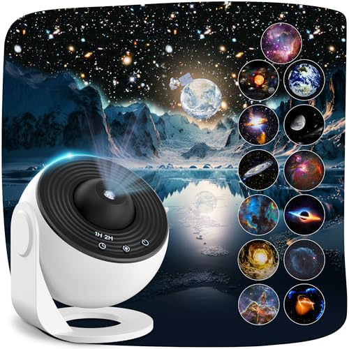 Planetarium Projector, Galaxy Timing Projector with 13 Film Discs, 360° Rotation Adjustment Night Light for Children, Adults, Bedroom Ceiling Gifts, 30 W