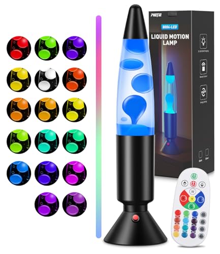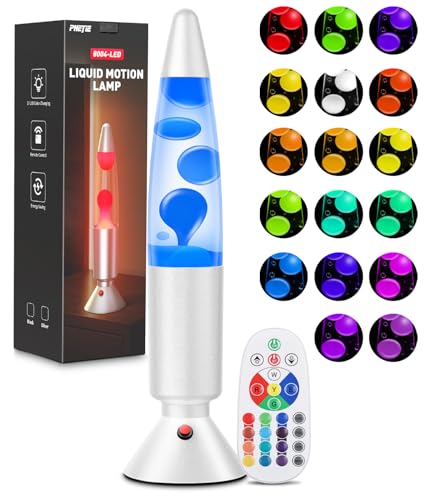 PHEJIE 14 inch RGB Colour Changing Liquid Motion Lamp with Remote - Auto Cycling Mood Light for Kids Bedroom, Dorm Room, Office Desk Decor, Retro Night Light Gift for Children & Adults