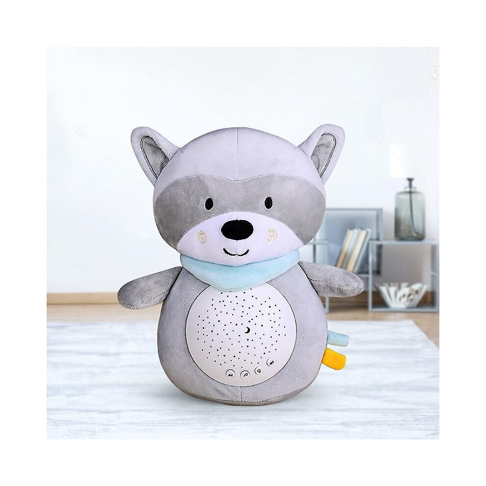 (Raccoon) Night Light Projector Baby Sleeping Animals Plush Toy Music Lamp Penguin Raccoon
